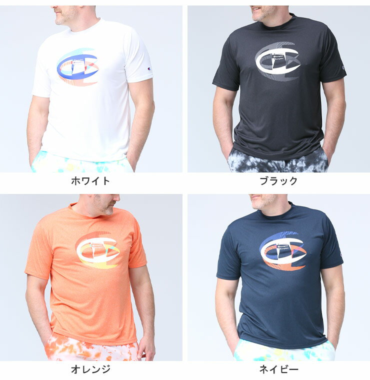 大きいサイズ メンズ Champion (チャンピオン) 速乾 防臭 スリーロゴプリント クルーネック 半袖 Tシャツ Tシャツ クルー 半袖 プリント スポーツ ストリート 春 夏 C3TS311L