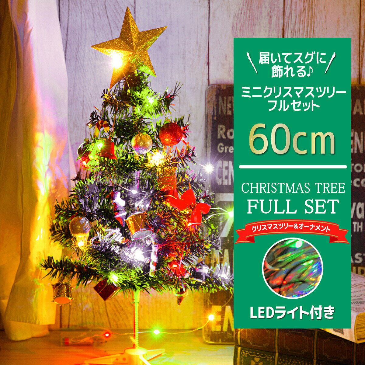 【マラソン期間 ポイント2倍】 クリスマスツリー ミニツリー 卓上ツリー LEDライト 高さ60cm クリスマス オーナメント ガーランド 飾り 送料無料 Christmas xmas