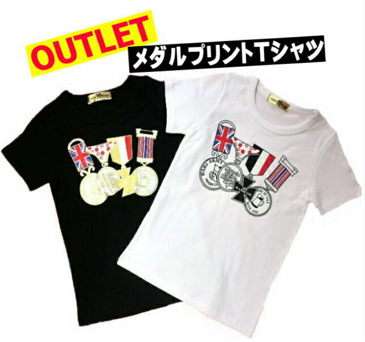 [アウトレット品]プリントTシャツ 半袖 BANK メダル ホワイト ブラック 白 黒 140cm ダンス衣装 ヒップホップ ダンス 衣装 ストリートダンス ステージ衣装 カットソー トップス ファッション キッズ