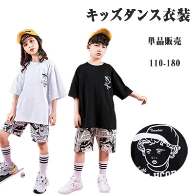【送料無料】キッズダンス衣装 単品販売 半袖Tシャツ白又は黒 短パン(1種類) 春/夏/秋 男の子 女の子 クールでカッコいいゆったりタイプ キッズ ジュニア 男女兼用 練習用に 本番用に ダンス ヒップホップ ジャズ 個人 団体 キッズダンス チームダンス